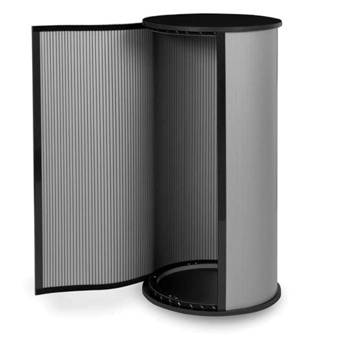 Promotivni stol Tribune Small je zahvaljujući jednostavnosti montaže, stekao veliku popularnost na mnogim tržištima.Stijenke ovog sustava su izrađene od celularnog PVC-a, montirane na drvenu ploču stola i drvenu bazu s čičak trakama. Ultralagani pult.